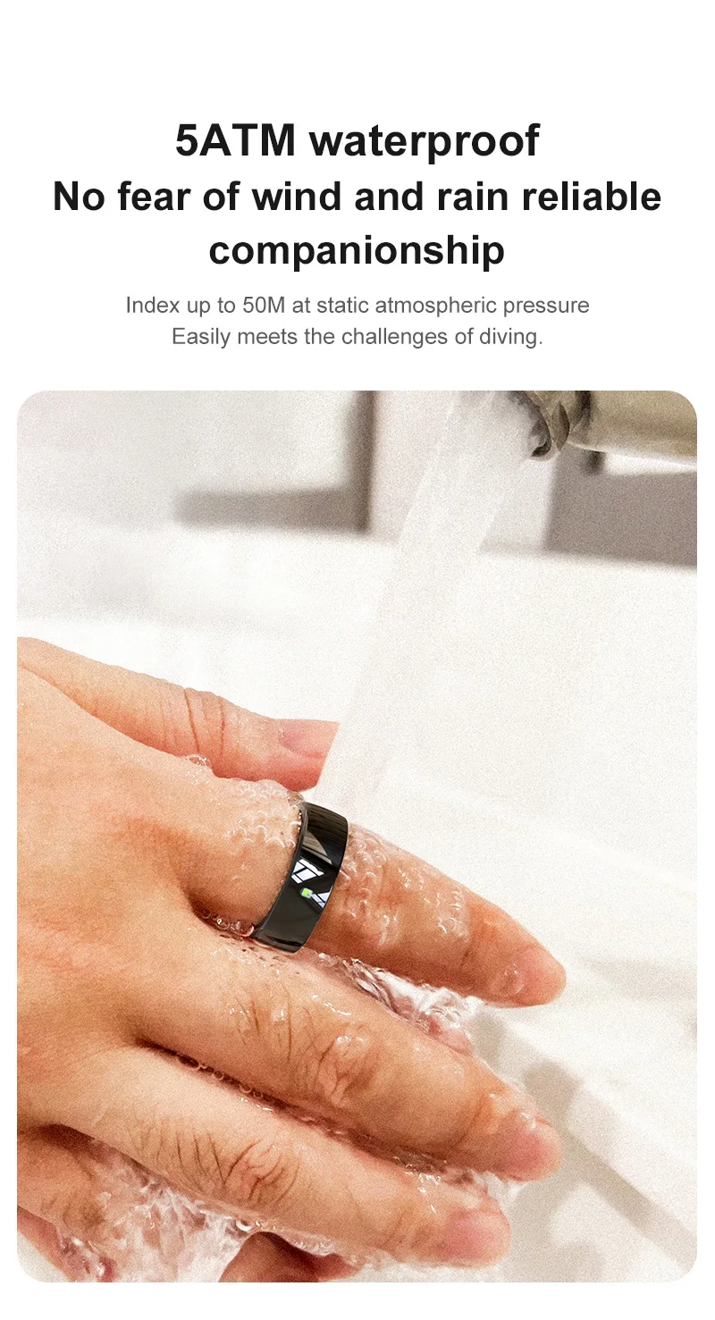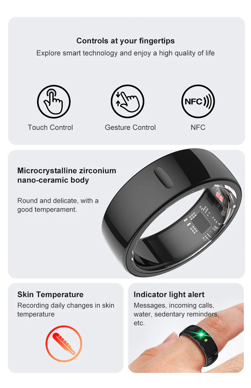 Smart Ring R05 är en stilren och vattentät smart ring i keramiskt material som hjälper dig att hålla koll på din hälsa och dagliga aktivitet – direkt från fingret.